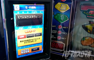 通常時の演出モードはサブ液晶から切り替えが可能。初代モード(ロー・ミドル・ハイ)は当時の特徴を継承しており、演出の出現頻度でボーナス期待度を示唆している。