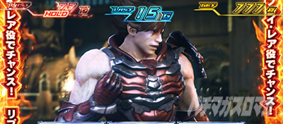 鉄拳RUSHはゲーム数上乗せタイプのAT。レア小役成立時にゲーム数上乗せ抽選を行っているほか、拳奪バトルの抽選も行っている。