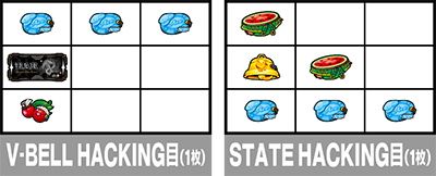小Vベル停止後は次ゲームに疑似遊技レア小役が出現するチャンスとなる。V-BELL HACKING中なら小Vベルの次は必ずレア小役が出現する。